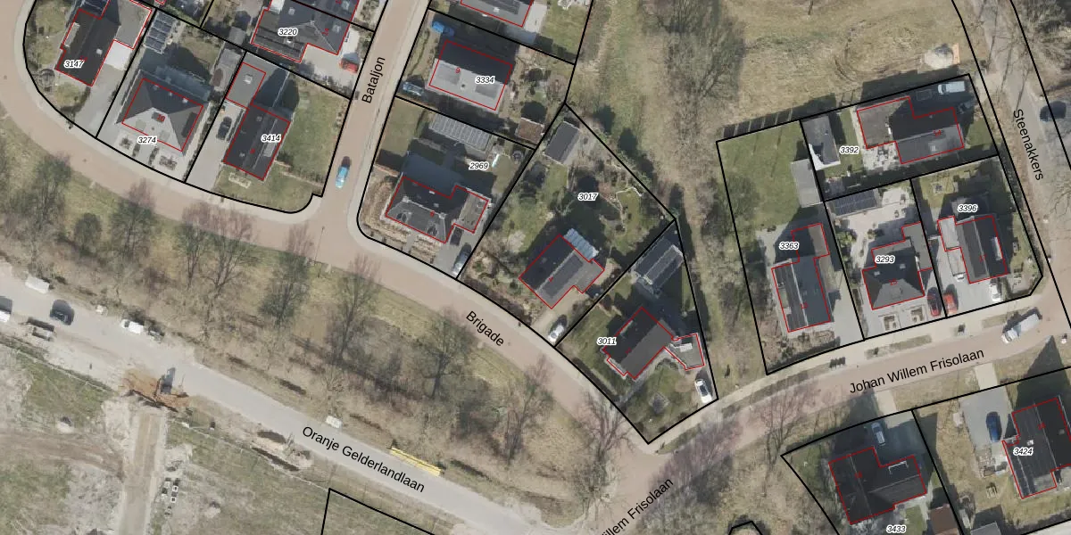 Het perceel waarop Brigade 4 staat heeft een oppervlakte van 916 m². Dit is een groot perceel. De perceeloppervlakte wordt geregistreerd door het Kadaster. Gedetailleerde informatie over de maten van dit perceel kunt u vinden in het rapport Kadastrale kaart met maatvoering van Brigade 4.