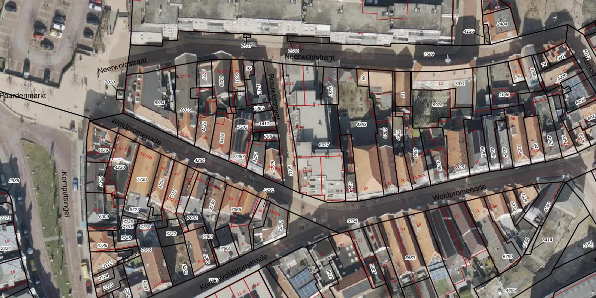 Het perceel waarop Brouwerstraat 34 staat heeft een oppervlakte van 699 m². Dit is een groot perceel. De perceeloppervlakte wordt geregistreerd door het Kadaster. Gedetailleerde informatie over de maten van dit perceel kunt u vinden in het rapport Kadastrale kaart met maatvoering van Brouwerstraat 34.
