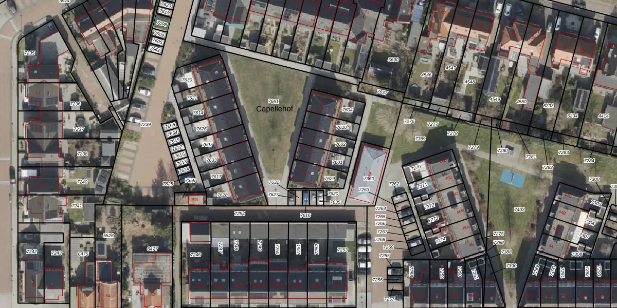 Het perceel waarop Capellehof 20 staat heeft een oppervlakte van 97 m². Dit is een klein perceel. De perceeloppervlakte wordt geregistreerd door het Kadaster. Gedetailleerde informatie over de maten van dit perceel kunt u vinden in het rapport Kadastrale kaart met maatvoering van Capellehof 20.
