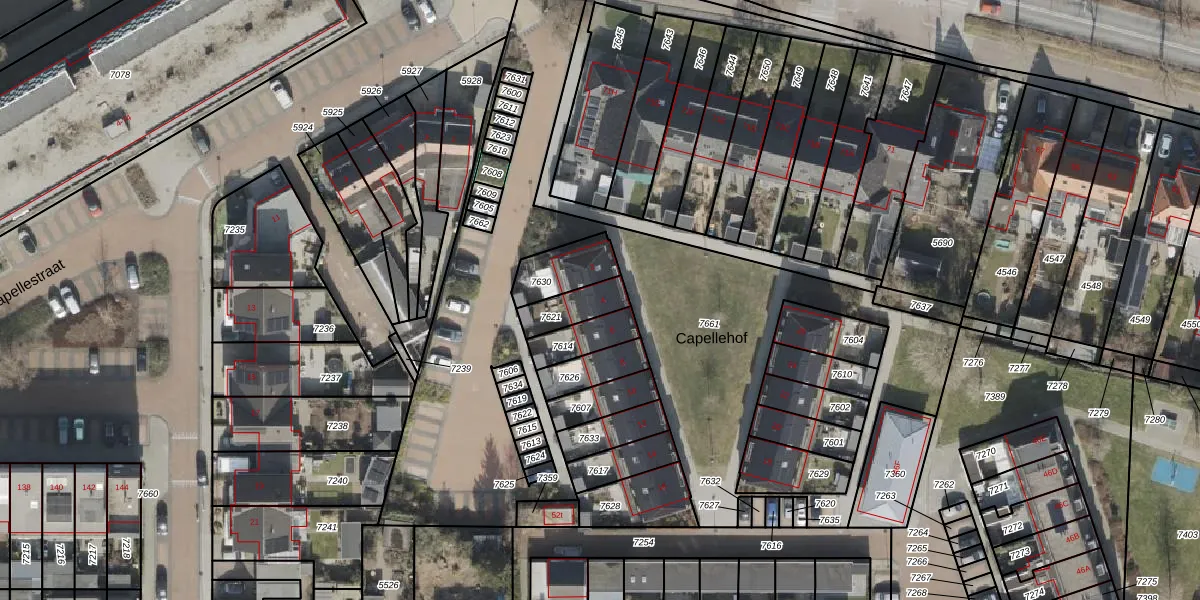 Het perceel waarop Capellehof 4 staat heeft een oppervlakte van 99 m². Dit is een klein perceel. De perceeloppervlakte wordt geregistreerd door het Kadaster. Gedetailleerde informatie over de maten van dit perceel kunt u vinden in het rapport Kadastrale kaart met maatvoering van Capellehof 4.