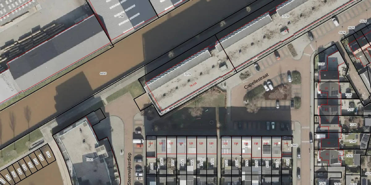 Capellestraat 100 is gelegen op kadastraal perceel SWK01E7079. Deze kadastrale aanduiding is uniek en wordt gebruikt door het Kadaster om eigendomsrechten en andere zakelijke rechten vast te leggen. Het perceel maakt onderdeel uit van de kadastrale gemeente Steenwijk.