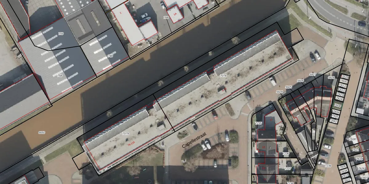 Het perceel waarop Capellestraat 58 staat heeft een oppervlakte van 1907 m². Dit is een zeer groot perceel. De perceeloppervlakte wordt geregistreerd door het Kadaster. Gedetailleerde informatie over de maten van dit perceel kunt u vinden in het rapport Kadastrale kaart met maatvoering van Capellestraat 58.