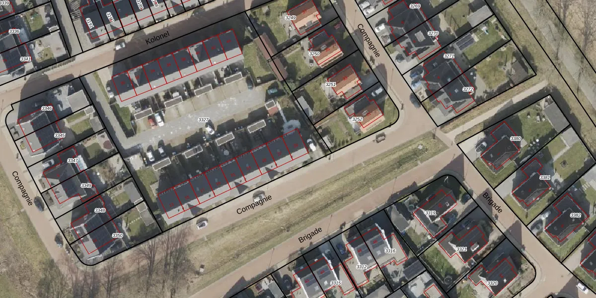 Het perceel waarop Compagnie 29 staat heeft een oppervlakte van 3472 m². Dit is een zeer groot perceel. De perceeloppervlakte wordt geregistreerd door het Kadaster. Gedetailleerde informatie over de maten van dit perceel kunt u vinden in het rapport Kadastrale kaart met maatvoering van Compagnie 29.