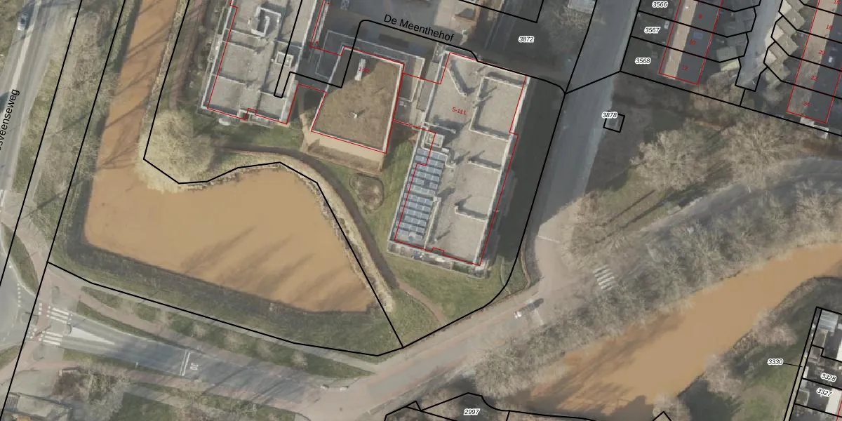 De Meenthehof 111 is gelegen op kadastraal perceel SWK01B875. Deze kadastrale aanduiding is uniek en wordt gebruikt door het Kadaster om eigendomsrechten en andere zakelijke rechten vast te leggen. Het perceel maakt onderdeel uit van de kadastrale gemeente Steenwijk.