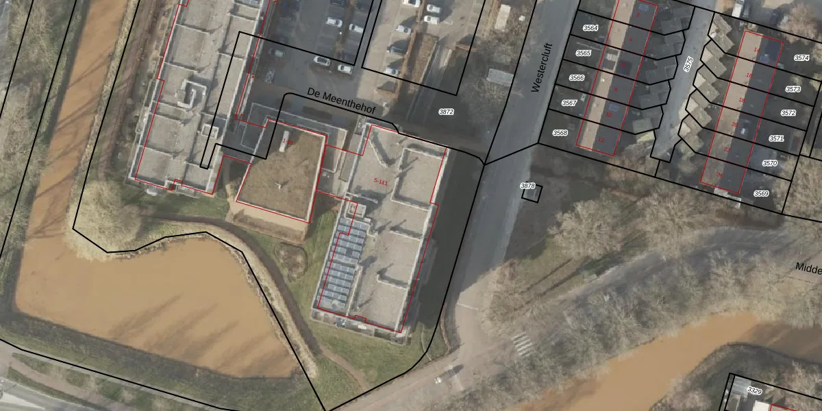 Het perceel waarop De Meenthehof 53 staat heeft een oppervlakte van 7420 m². Dit is een zeer groot perceel. De perceeloppervlakte wordt geregistreerd door het Kadaster. Gedetailleerde informatie over de maten van dit perceel kunt u vinden in het rapport Kadastrale kaart met maatvoering van De Meenthehof 53.