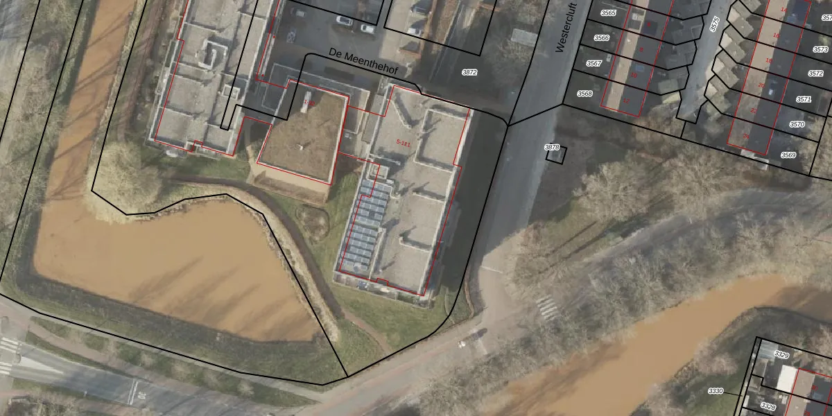 Het perceel waarop De Meenthehof 71 staat heeft een oppervlakte van 7420 m². Dit is een zeer groot perceel. De perceeloppervlakte wordt geregistreerd door het Kadaster. Gedetailleerde informatie over de maten van dit perceel kunt u vinden in het rapport Kadastrale kaart met maatvoering van De Meenthehof 71.