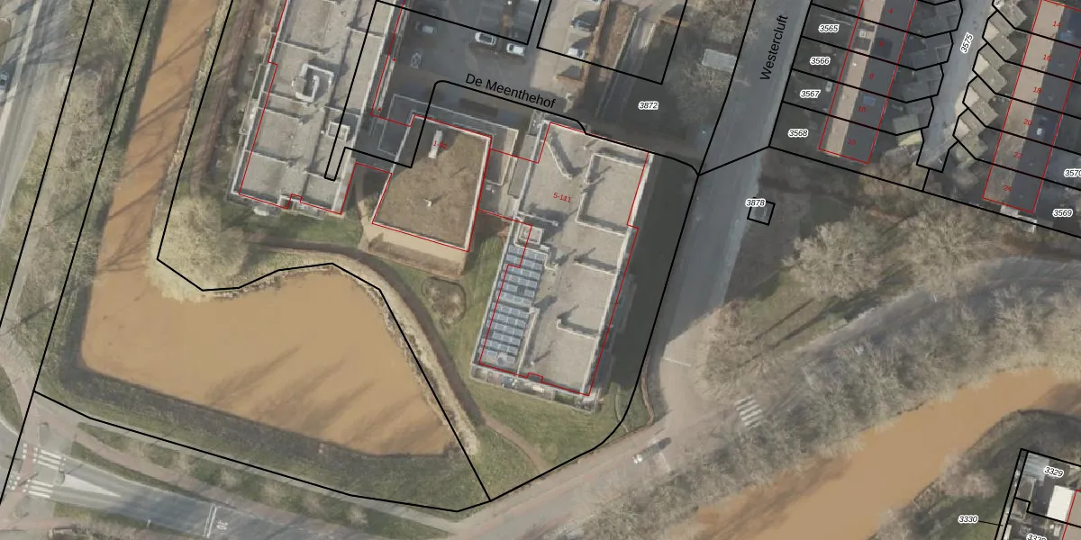 Het perceel waarop De Meenthehof 77 staat heeft een oppervlakte van 7420 m². Dit is een zeer groot perceel. De perceeloppervlakte wordt geregistreerd door het Kadaster. Gedetailleerde informatie over de maten van dit perceel kunt u vinden in het rapport Kadastrale kaart met maatvoering van De Meenthehof 77.