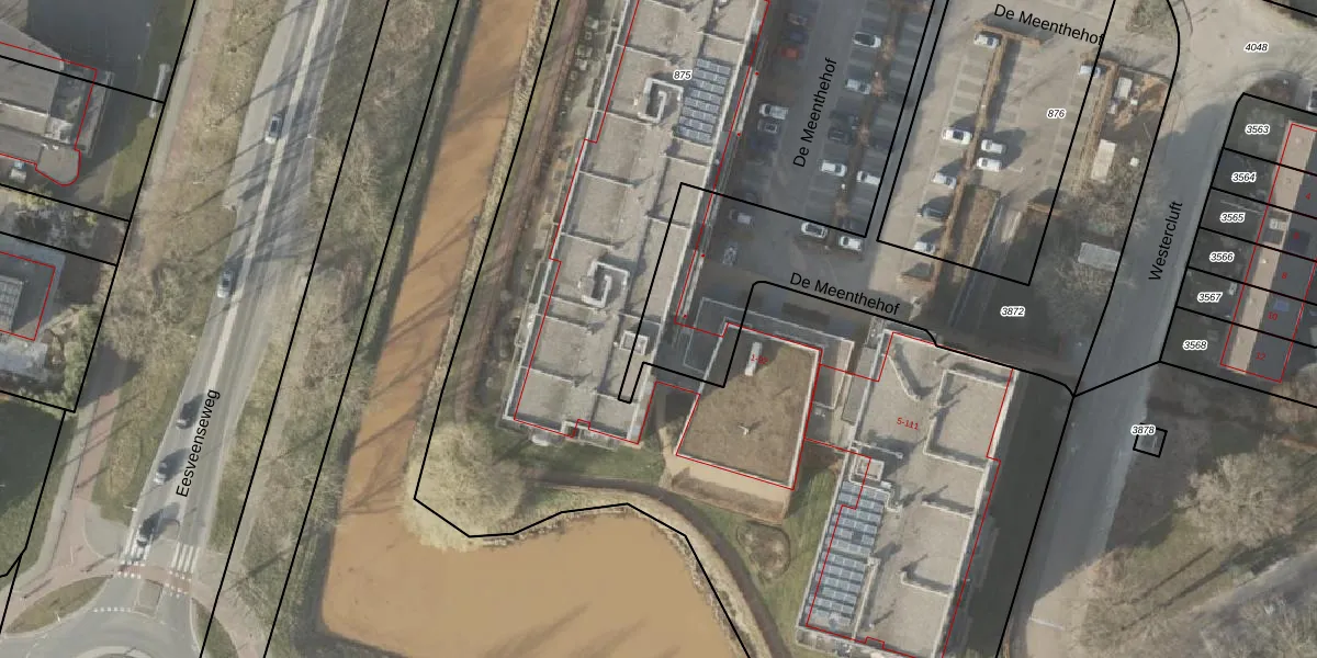 De Meenthehof 8 is gelegen op kadastraal perceel SWK01B3872. Deze kadastrale aanduiding is uniek en wordt gebruikt door het Kadaster om eigendomsrechten en andere zakelijke rechten vast te leggen. Het perceel maakt onderdeel uit van de kadastrale gemeente Steenwijk.