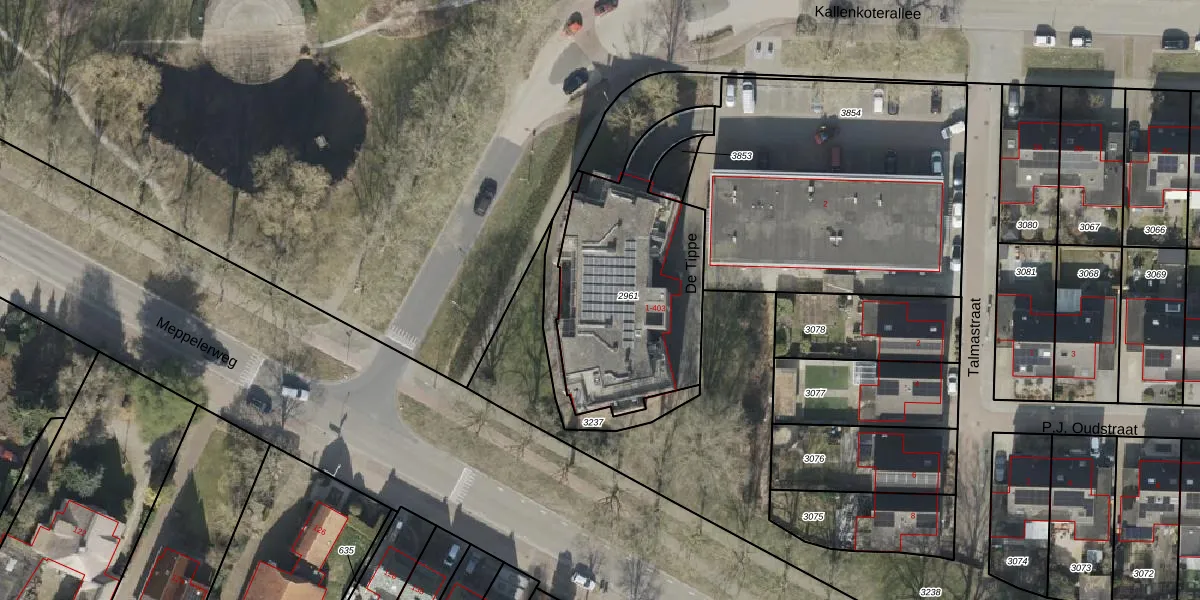 Het perceel waarop De Tippe 403 staat heeft een oppervlakte van 917 m². Dit is een groot perceel. De perceeloppervlakte wordt geregistreerd door het Kadaster. Gedetailleerde informatie over de maten van dit perceel kunt u vinden in het rapport Kadastrale kaart met maatvoering van De Tippe 403.