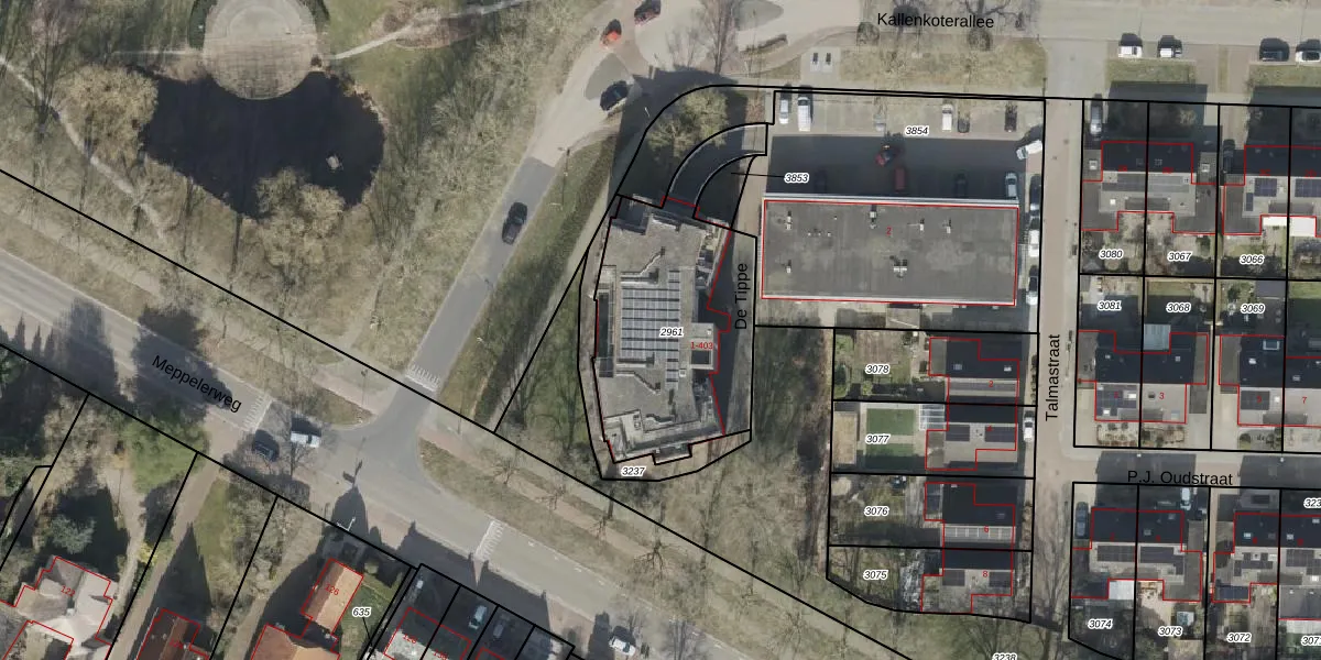 Het perceel waarop De Tippe 5 staat heeft een oppervlakte van 917 m². Dit is een groot perceel. De perceeloppervlakte wordt geregistreerd door het Kadaster. Gedetailleerde informatie over de maten van dit perceel kunt u vinden in het rapport Kadastrale kaart met maatvoering van De Tippe 5.