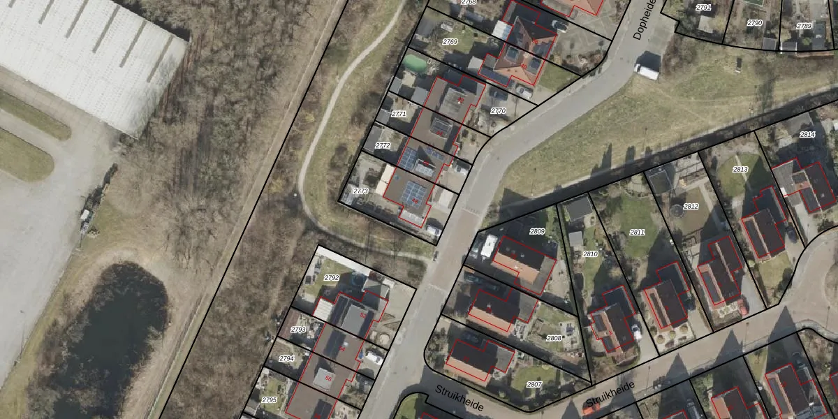 Gebruik de zoekbalk of klik op een perceel voor informatie over de adressen binnen dit perceel.