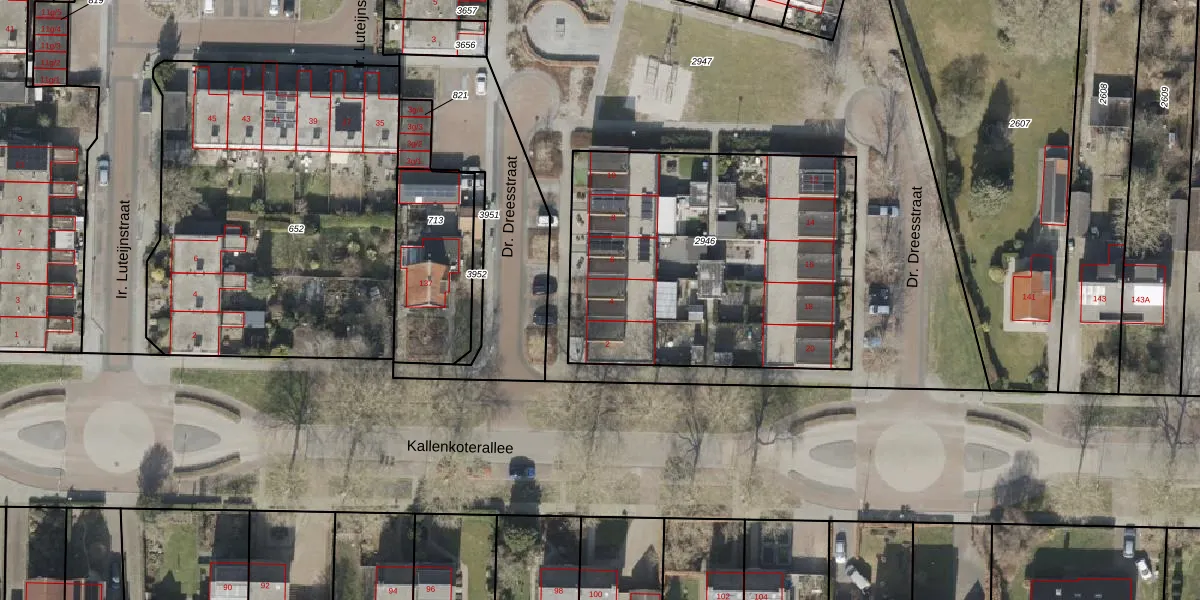 Het perceel waarop Dr. Dreesstraat 4 staat heeft een oppervlakte van 1690 m². Dit is een zeer groot perceel. De perceeloppervlakte wordt geregistreerd door het Kadaster. Gedetailleerde informatie over de maten van dit perceel kunt u vinden in het rapport Kadastrale kaart met maatvoering van Dr. Dreesstraat 4.