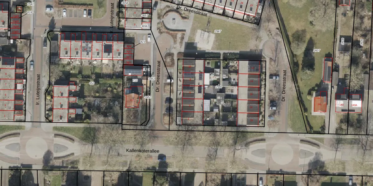 Het perceel waarop Dr. Dreesstraat 6 staat heeft een oppervlakte van 1690 m². Dit is een zeer groot perceel. De perceeloppervlakte wordt geregistreerd door het Kadaster. Gedetailleerde informatie over de maten van dit perceel kunt u vinden in het rapport Kadastrale kaart met maatvoering van Dr. Dreesstraat 6.