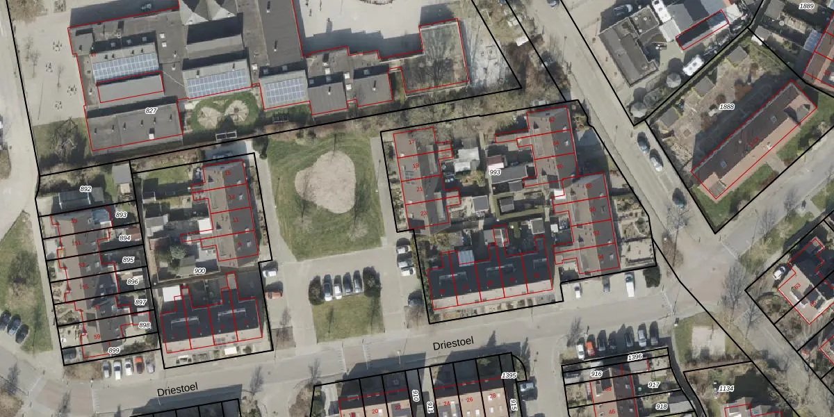 Het perceel waarop Driestoel 23 staat heeft een oppervlakte van 2446 m². Dit is een zeer groot perceel. De perceeloppervlakte wordt geregistreerd door het Kadaster. Gedetailleerde informatie over de maten van dit perceel kunt u vinden in het rapport Kadastrale kaart met maatvoering van Driestoel 23.