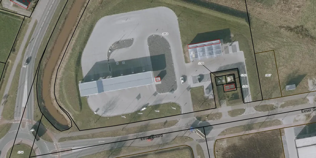Het perceel waarop Eeser Gaard 2 staat heeft een oppervlakte van 1,0 ha. Dit is een zeer groot perceel. De perceeloppervlakte wordt geregistreerd door het Kadaster. Gedetailleerde informatie over de maten van dit perceel kunt u vinden in het rapport Kadastrale kaart met maatvoering van Eeser Gaard 2.