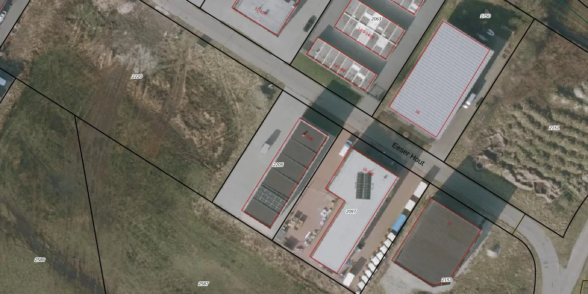 Eeser Hout 13-A is gelegen op kadastraal perceel SWK01G2205. Deze kadastrale aanduiding is uniek en wordt gebruikt door het Kadaster om eigendomsrechten en andere zakelijke rechten vast te leggen. Het perceel maakt onderdeel uit van de kadastrale gemeente Steenwijk.