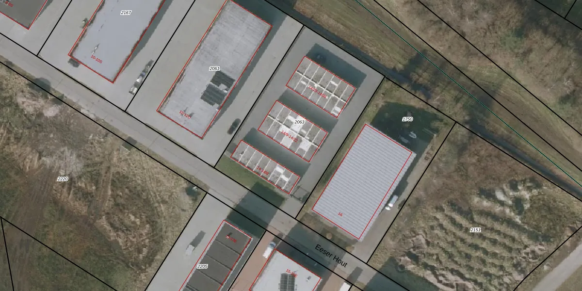 Het perceel waarop Eeser Hout 14-11 staat heeft een oppervlakte van 1912 m². Dit is een zeer groot perceel. De perceeloppervlakte wordt geregistreerd door het Kadaster. Gedetailleerde informatie over de maten van dit perceel kunt u vinden in het rapport Kadastrale kaart met maatvoering van Eeser Hout 14-11.