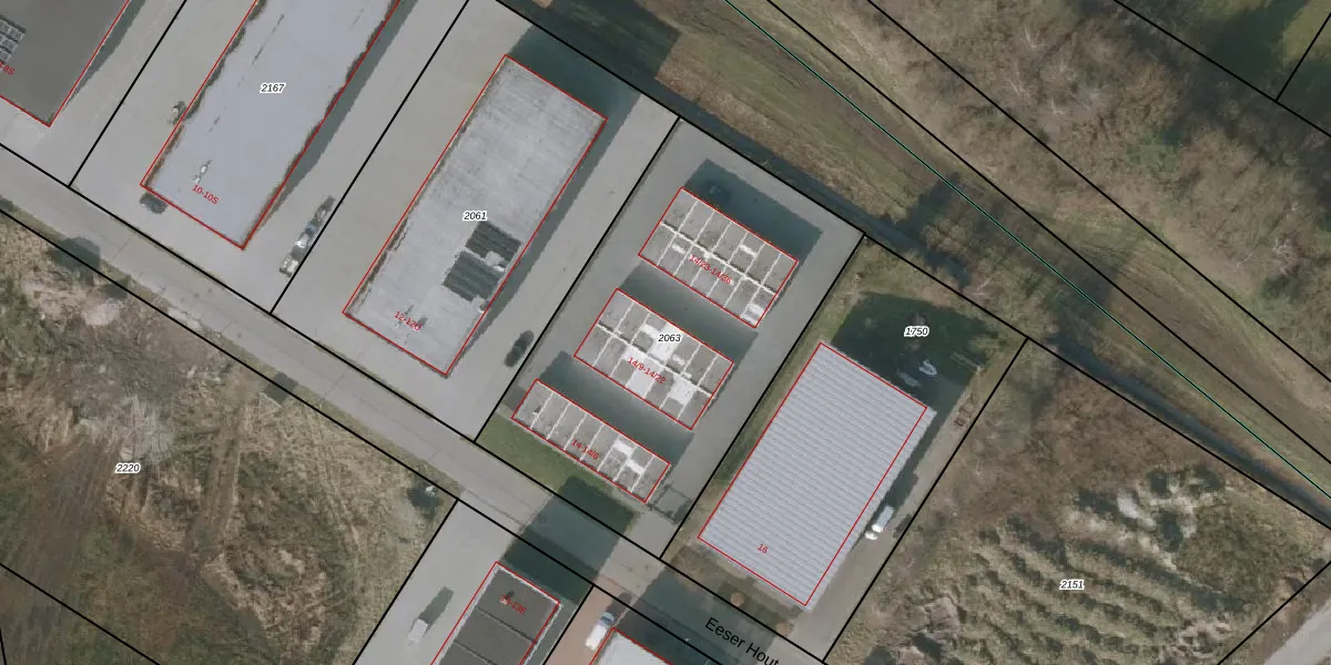 Eeser Hout 14-19 is gelegen op kadastraal perceel SWK01G2063. Deze kadastrale aanduiding is uniek en wordt gebruikt door het Kadaster om eigendomsrechten en andere zakelijke rechten vast te leggen. Het perceel maakt onderdeel uit van de kadastrale gemeente Steenwijk.