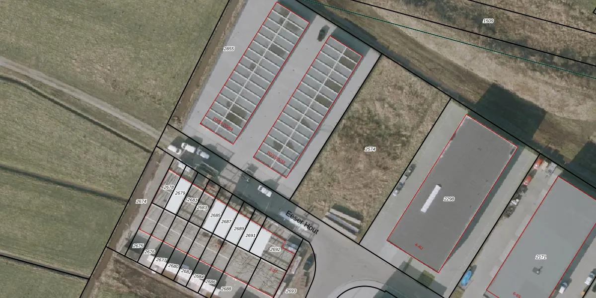 Het perceel waarop Eeser Hout 2-G-3 staat heeft een oppervlakte van 2978 m². Dit is een zeer groot perceel. De perceeloppervlakte wordt geregistreerd door het Kadaster. Gedetailleerde informatie over de maten van dit perceel kunt u vinden in het rapport Kadastrale kaart met maatvoering van Eeser Hout 2-G-3.