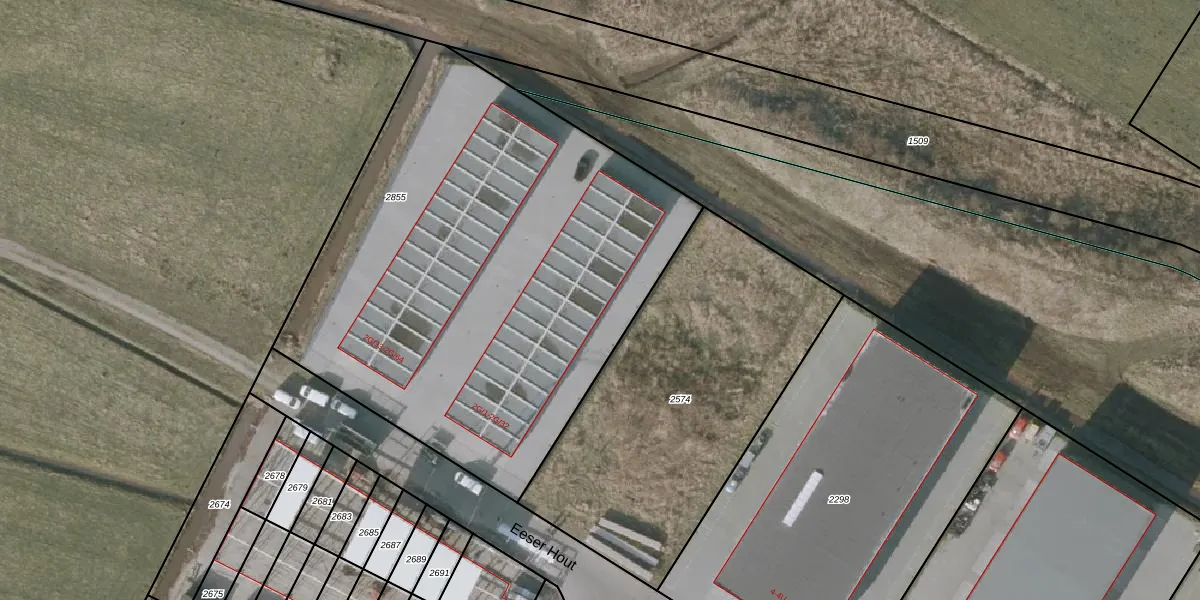 Het perceel waarop Eeser Hout 2-G-8 staat heeft een oppervlakte van 2978 m². Dit is een zeer groot perceel. De perceeloppervlakte wordt geregistreerd door het Kadaster. Gedetailleerde informatie over de maten van dit perceel kunt u vinden in het rapport Kadastrale kaart met maatvoering van Eeser Hout 2-G-8.