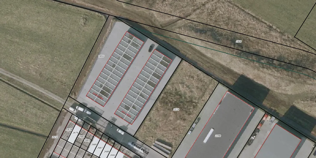 Het perceel waarop Eeser Hout 2-G-9 staat heeft een oppervlakte van 2978 m². Dit is een zeer groot perceel. De perceeloppervlakte wordt geregistreerd door het Kadaster. Gedetailleerde informatie over de maten van dit perceel kunt u vinden in het rapport Kadastrale kaart met maatvoering van Eeser Hout 2-G-9.