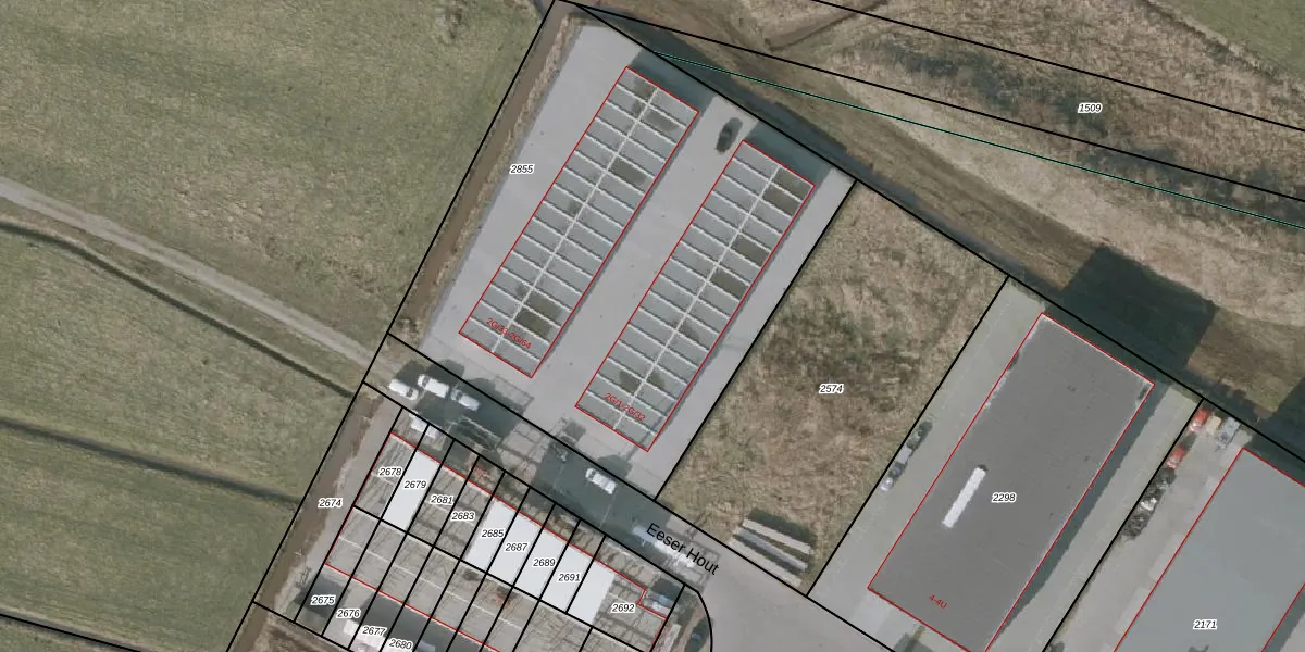 Het perceel waarop Eeser Hout 2-G-27 staat heeft een oppervlakte van 2978 m². Dit is een zeer groot perceel. De perceeloppervlakte wordt geregistreerd door het Kadaster. Gedetailleerde informatie over de maten van dit perceel kunt u vinden in het rapport Kadastrale kaart met maatvoering van Eeser Hout 2-G-27.