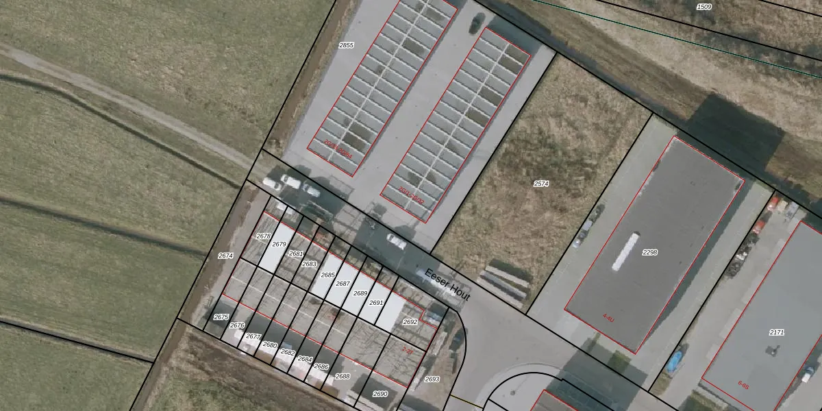 Het perceel waarop Eeser Hout 2-G-32 staat heeft een oppervlakte van 2978 m². Dit is een zeer groot perceel. De perceeloppervlakte wordt geregistreerd door het Kadaster. Gedetailleerde informatie over de maten van dit perceel kunt u vinden in het rapport Kadastrale kaart met maatvoering van Eeser Hout 2-G-32.