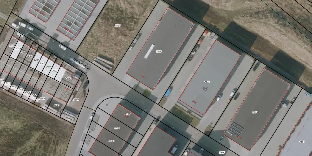 Het perceel waarop Eeser Hout 4-A staat heeft een oppervlakte van 2053 m². Dit is een zeer groot perceel. De perceeloppervlakte wordt geregistreerd door het Kadaster. Gedetailleerde informatie over de maten van dit perceel kunt u vinden in het rapport Kadastrale kaart met maatvoering van Eeser Hout 4-A.