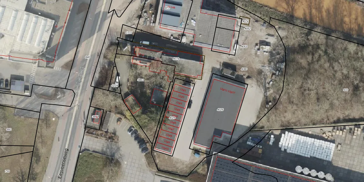 Eesveenseweg 12-g-1 is gelegen op kadastraal perceel SWK01B4025. Deze kadastrale aanduiding is uniek en wordt gebruikt door het Kadaster om eigendomsrechten en andere zakelijke rechten vast te leggen. Het perceel maakt onderdeel uit van de kadastrale gemeente Steenwijk.