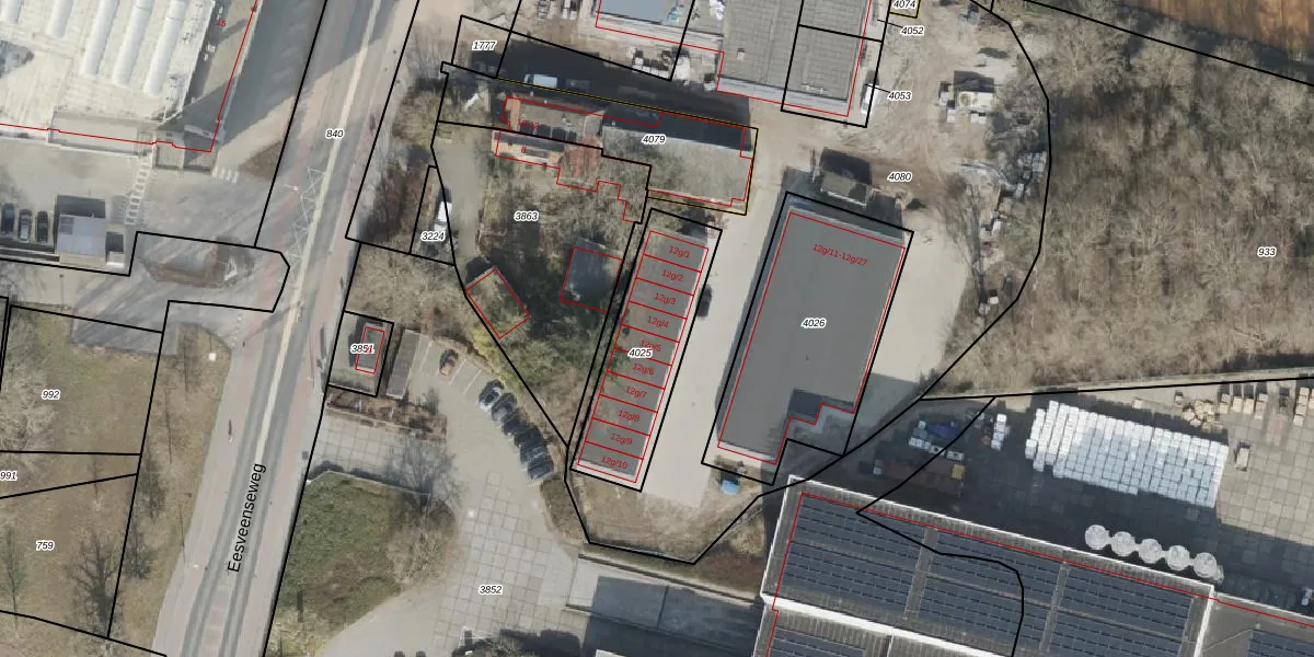 Het perceel waarop Eesveenseweg 12-g-4 staat heeft een oppervlakte van 466 m². Dit is een groot perceel. De perceeloppervlakte wordt geregistreerd door het Kadaster. Gedetailleerde informatie over de maten van dit perceel kunt u vinden in het rapport Kadastrale kaart met maatvoering van Eesveenseweg 12-g-4.