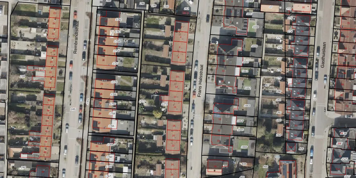 Het perceel waarop Frans Halsstraat 12 staat heeft een oppervlakte van 2892 m². Dit is een zeer groot perceel. De perceeloppervlakte wordt geregistreerd door het Kadaster. Gedetailleerde informatie over de maten van dit perceel kunt u vinden in het rapport Kadastrale kaart met maatvoering van Frans Halsstraat 12.