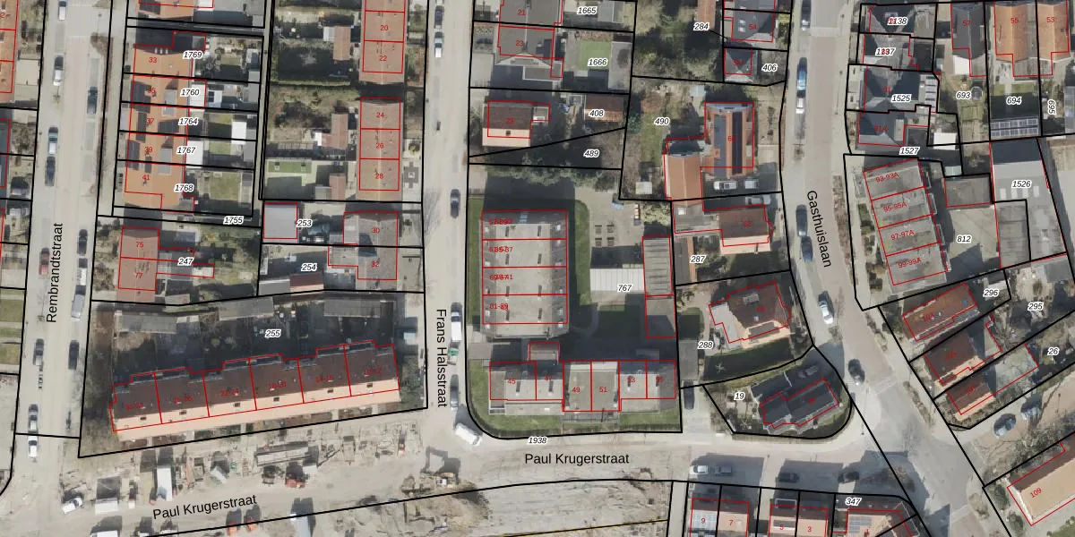 Het perceel waarop Frans Halsstraat 69 staat heeft een oppervlakte van 1875 m². Dit is een zeer groot perceel. De perceeloppervlakte wordt geregistreerd door het Kadaster. Gedetailleerde informatie over de maten van dit perceel kunt u vinden in het rapport Kadastrale kaart met maatvoering van Frans Halsstraat 69.