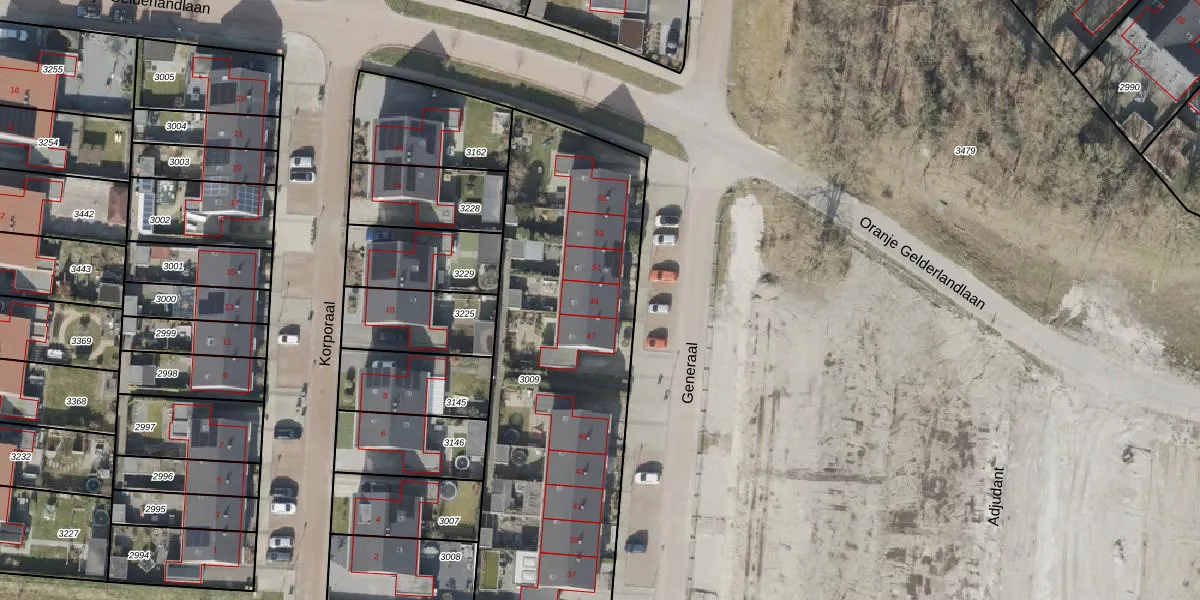 Het perceel waarop Generaal 49 staat heeft een oppervlakte van 1870 m². Dit is een zeer groot perceel. De perceeloppervlakte wordt geregistreerd door het Kadaster. Gedetailleerde informatie over de maten van dit perceel kunt u vinden in het rapport Kadastrale kaart met maatvoering van Generaal 49.