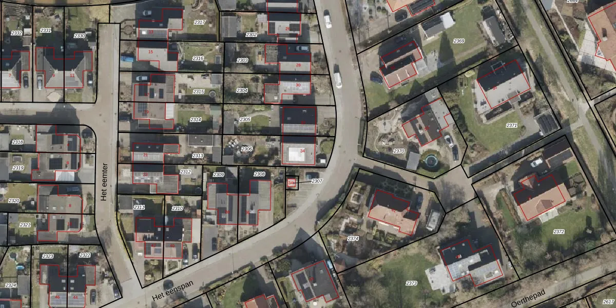 Het perceel waarop Het eenspan 34 staat heeft een oppervlakte van 359 m². Dit is een groot perceel. De perceeloppervlakte wordt geregistreerd door het Kadaster. Gedetailleerde informatie over de maten van dit perceel kunt u vinden in het rapport Kadastrale kaart met maatvoering van Het eenspan 34.