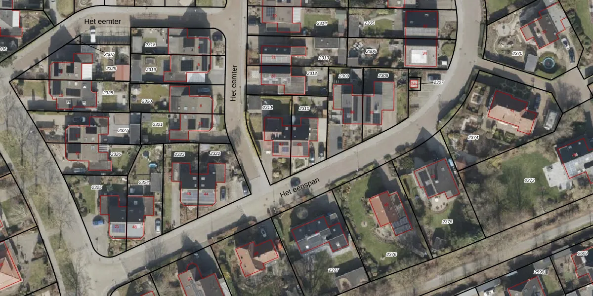 Gebruik de zoekbalk of klik op een perceel voor informatie over de adressen binnen dit perceel.