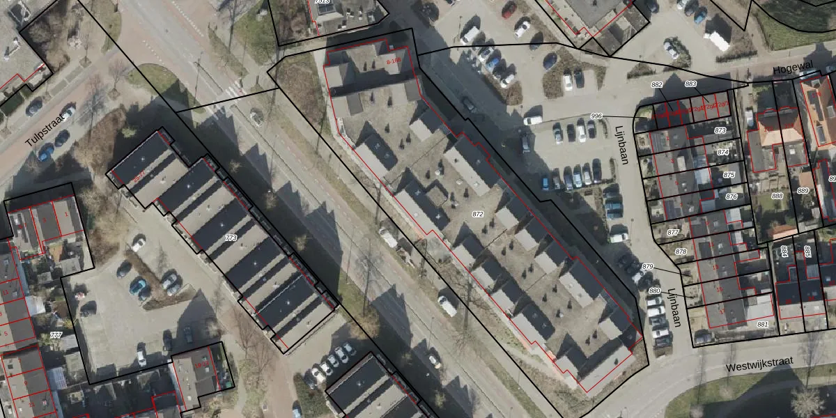 Het perceel waarop Hogewal 106 staat heeft een oppervlakte van 3224 m². Dit is een zeer groot perceel. De perceeloppervlakte wordt geregistreerd door het Kadaster. Gedetailleerde informatie over de maten van dit perceel kunt u vinden in het rapport Kadastrale kaart met maatvoering van Hogewal 106.