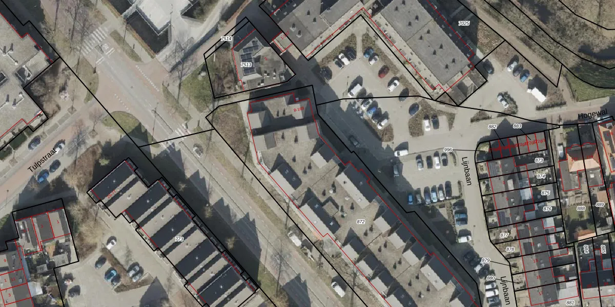 Het perceel waarop Hogewal 56 staat heeft een oppervlakte van 3224 m². Dit is een zeer groot perceel. De perceeloppervlakte wordt geregistreerd door het Kadaster. Gedetailleerde informatie over de maten van dit perceel kunt u vinden in het rapport Kadastrale kaart met maatvoering van Hogewal 56.