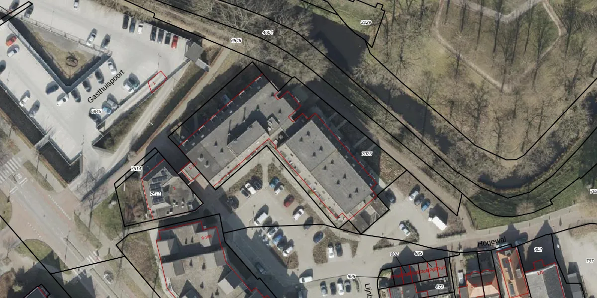 Het perceel waarop Hogewal 69 staat heeft een oppervlakte van 2094 m². Dit is een zeer groot perceel. De perceeloppervlakte wordt geregistreerd door het Kadaster. Gedetailleerde informatie over de maten van dit perceel kunt u vinden in het rapport Kadastrale kaart met maatvoering van Hogewal 69.