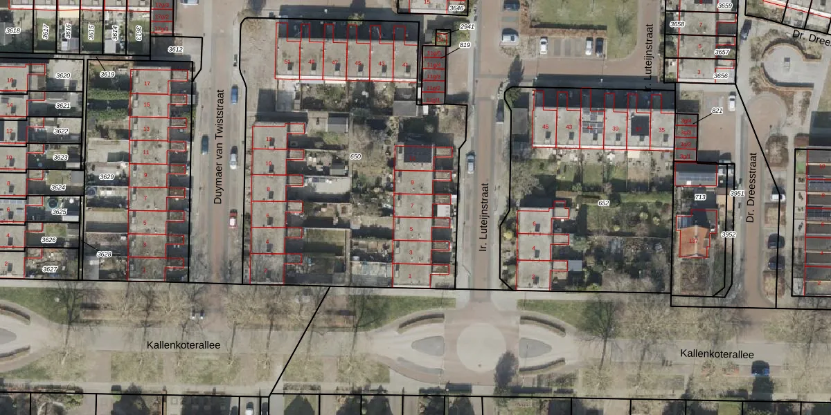Het perceel waarop Ir. Luteijnstraat 7 staat heeft een oppervlakte van 3120 m². Dit is een zeer groot perceel. De perceeloppervlakte wordt geregistreerd door het Kadaster. Gedetailleerde informatie over de maten van dit perceel kunt u vinden in het rapport Kadastrale kaart met maatvoering van Ir. Luteijnstraat 7.