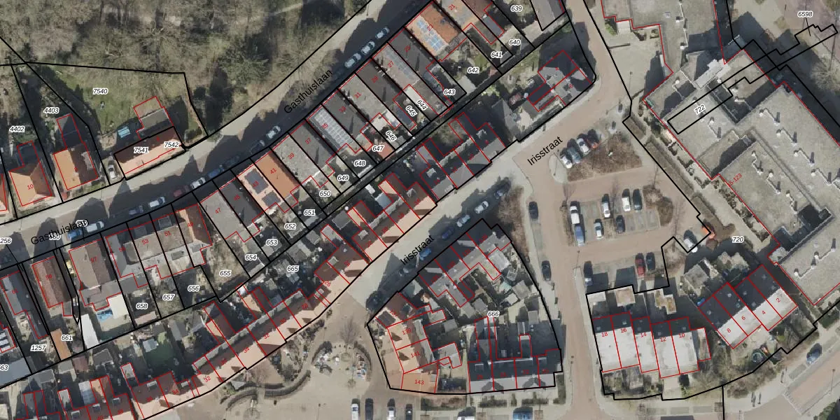 Het perceel waarop Irisstraat 16 staat heeft een oppervlakte van 3060 m². Dit is een zeer groot perceel. De perceeloppervlakte wordt geregistreerd door het Kadaster. Gedetailleerde informatie over de maten van dit perceel kunt u vinden in het rapport Kadastrale kaart met maatvoering van Irisstraat 16.