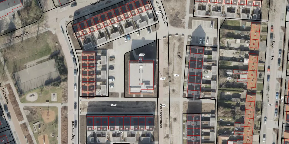 Het perceel waarop Jan Steenstraat 20 staat heeft een oppervlakte van 785 m². Dit is een groot perceel. De perceeloppervlakte wordt geregistreerd door het Kadaster. Gedetailleerde informatie over de maten van dit perceel kunt u vinden in het rapport Kadastrale kaart met maatvoering van Jan Steenstraat 20.
