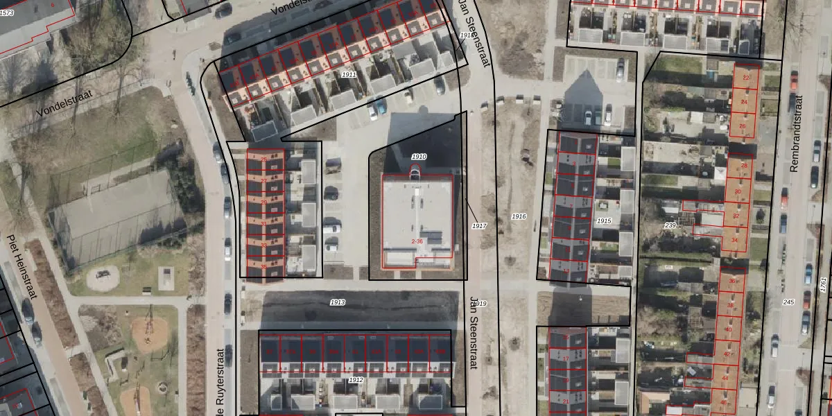 Het perceel waarop Jan Steenstraat 32 staat heeft een oppervlakte van 785 m². Dit is een groot perceel. De perceeloppervlakte wordt geregistreerd door het Kadaster. Gedetailleerde informatie over de maten van dit perceel kunt u vinden in het rapport Kadastrale kaart met maatvoering van Jan Steenstraat 32.