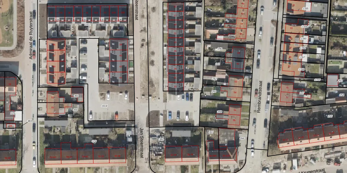Het perceel waarop Jan Steenstraat 33 staat heeft een oppervlakte van 3075 m². Dit is een zeer groot perceel. De perceeloppervlakte wordt geregistreerd door het Kadaster. Gedetailleerde informatie over de maten van dit perceel kunt u vinden in het rapport Kadastrale kaart met maatvoering van Jan Steenstraat 33.