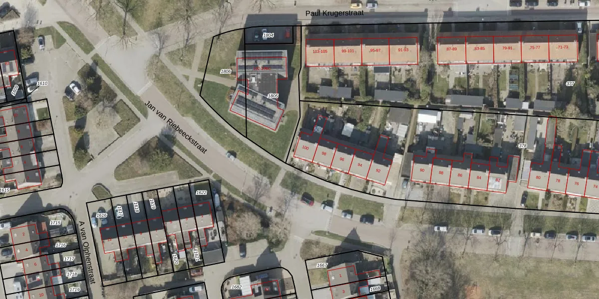 Het perceel waarop Jan van Riebeeckstraat 100 staat heeft een oppervlakte van 4710 m². Dit is een zeer groot perceel. De perceeloppervlakte wordt geregistreerd door het Kadaster. Gedetailleerde informatie over de maten van dit perceel kunt u vinden in het rapport Kadastrale kaart met maatvoering van Jan van Riebeeckstraat 100.