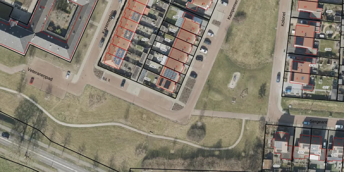 Het perceel waarop Kampement 1 staat heeft een oppervlakte van 220 m². Dit is een middelgroot perceel. De perceeloppervlakte wordt geregistreerd door het Kadaster. Gedetailleerde informatie over de maten van dit perceel kunt u vinden in het rapport Kadastrale kaart met maatvoering van Kampement 1.