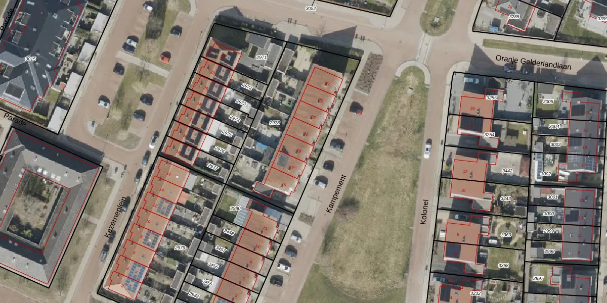 Het perceel waarop Kampement 19 staat heeft een oppervlakte van 1305 m². Dit is een zeer groot perceel. De perceeloppervlakte wordt geregistreerd door het Kadaster. Gedetailleerde informatie over de maten van dit perceel kunt u vinden in het rapport Kadastrale kaart met maatvoering van Kampement 19.