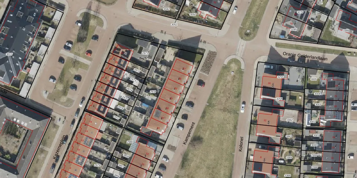 Het perceel waarop Kampement 23 staat heeft een oppervlakte van 1305 m². Dit is een zeer groot perceel. De perceeloppervlakte wordt geregistreerd door het Kadaster. Gedetailleerde informatie over de maten van dit perceel kunt u vinden in het rapport Kadastrale kaart met maatvoering van Kampement 23.