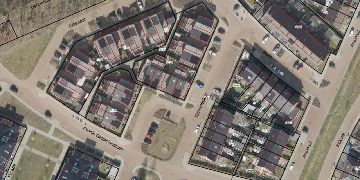 Het perceel waarop Kazerneplein 15 staat heeft een oppervlakte van 1200 m². Dit is een zeer groot perceel. De perceeloppervlakte wordt geregistreerd door het Kadaster. Gedetailleerde informatie over de maten van dit perceel kunt u vinden in het rapport Kadastrale kaart met maatvoering van Kazerneplein 15.