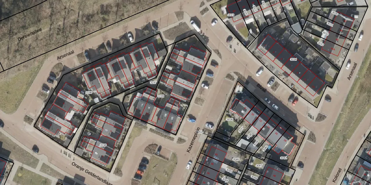 Het perceel waarop Kazerneplein 17 staat heeft een oppervlakte van 1200 m². Dit is een zeer groot perceel. De perceeloppervlakte wordt geregistreerd door het Kadaster. Gedetailleerde informatie over de maten van dit perceel kunt u vinden in het rapport Kadastrale kaart met maatvoering van Kazerneplein 17.