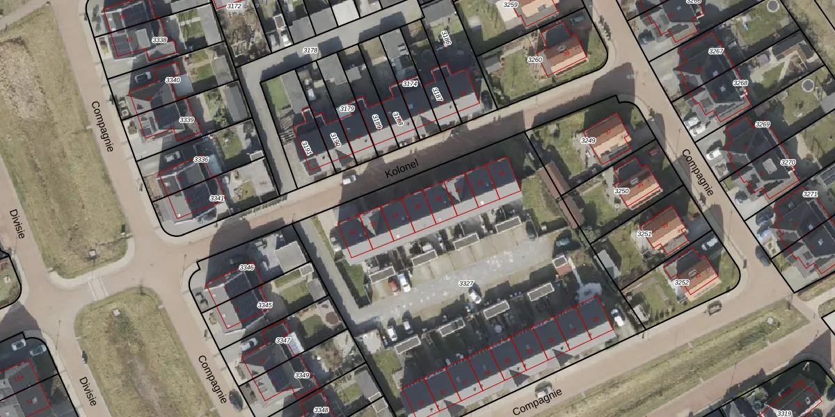 Het perceel waarop Kolonel 36 staat heeft een oppervlakte van 3472 m². Dit is een zeer groot perceel. De perceeloppervlakte wordt geregistreerd door het Kadaster. Gedetailleerde informatie over de maten van dit perceel kunt u vinden in het rapport Kadastrale kaart met maatvoering van Kolonel 36.